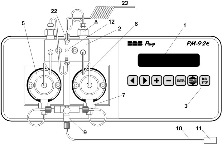 | 7. | Inlet check-valve assembly | 18. | Serial RS-232c connector |