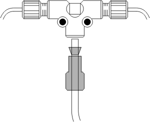 The PM-92 is factory plumbed, and ready as received for final connection of the inlet and outlet solvent lines. Unwrap the PTFE tubing carefully and remove the protective cover from the solvent-uptake frit. The uptake tubing connects to the tee at the PM-92 pump head with a flangeless fitting. Be sure to install this with the flat face of the ferrule entering the tee: