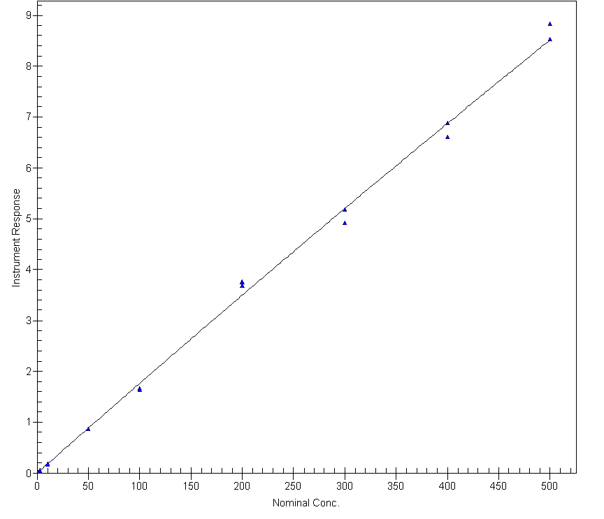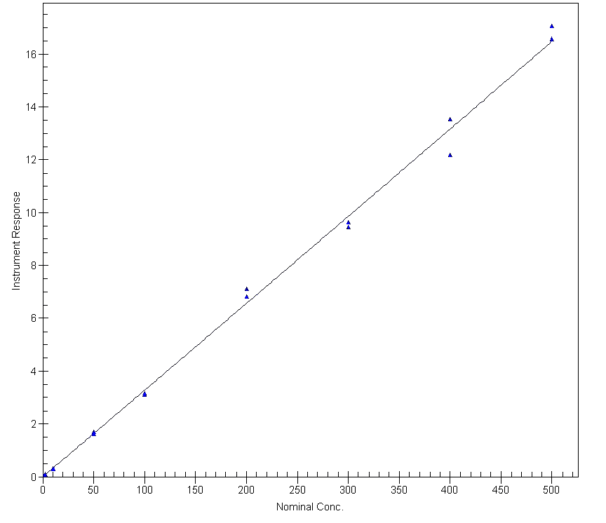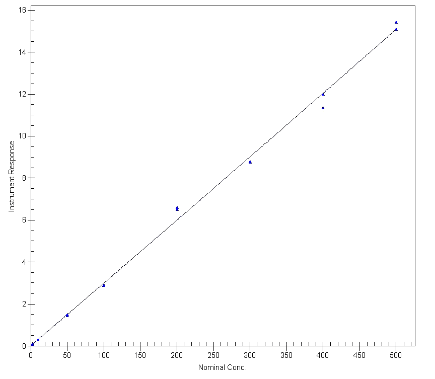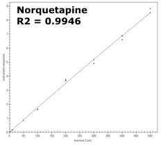 Figure 2 represents typical calibration data for each of the three analytes (Range 0.5 - 500 ng/mL)