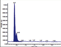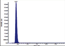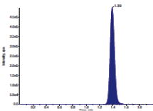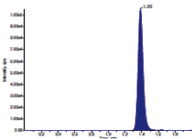 | Figure 2. Chromatogram of Ribavirin from a Phenomenex Synergi 4 m Hydro-RP 80Ã… 2 x 50mm eluted isocratic with 5% ACN in 0.1% formic acid in water. | Figure 3. Chromatogram of Ribavirin from a GL sciences Inertsil ODS-EP 5 mm 2.1 x 33mm eluted isocratic with 5% ACN in 0.1% formic acid in water. | Figure 4. Chromatogram of Ribavirin from a Waters Xbridge Shield RP18 5 mm 2.1x 50 mm eluted isocratic with 5% ACN in 0.1% formic acid in water. |