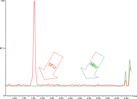 Liquid/liquid extraction of 5FU gives good extraction efficiency with minimal background and ion suppression.