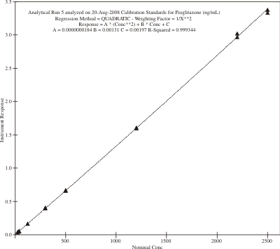 - Prior publications have described method development and validation for pioglitazone in human serum using traditional LC-MS/MS methodologies