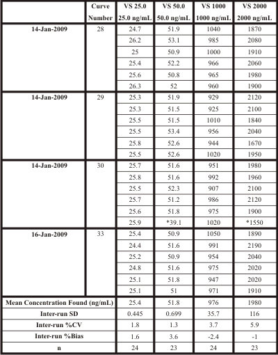 Table 3. LDTD-APCI/MS/MS (Thermo TSQ Quantum Ultra) VS Precision and Accuracy
