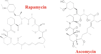 Rapamycin, also known as Sirolimus, was discovered in 1965, when it was isolated from a microorganism in soil. Since its discovery, it has demonstrated useful immunosuppressive properties, which have been utilized in preventing the rejection of organ transplants. Rapamycin is a mTOR inhibitor that has an advantage over calcineurin inhibitors, such as tacrolimus and cyclosporine, since it is not toxic to kidneys. Rapamycin has a molecular weight of 914 and has the molecular formula of C51H79NO13.