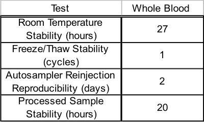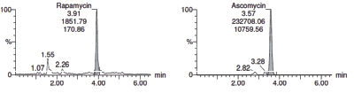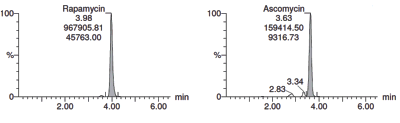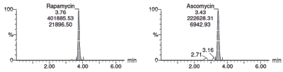 No interference in the quantification of rapamycin was seen from six different lots of porcine blood and tissue. The method was not impacted by carryover of rapamycin or the internal standard, ascomycin, in the system. This method was used to quantify rapamycin in a GLP study to assay preclinical samples.