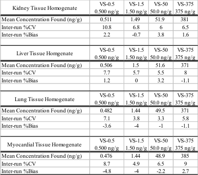 A high throughput, unique, sensitive, and robust method was validated for the quantification of rapamycin in porcine whole blood and tissues according to FDA guidelines for linearity, precision, accuracy, specificity, and stability.