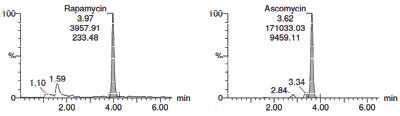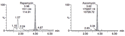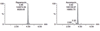 Analysis of rapamycin uses a unique combination of protein precipitation and column switching. A 0.1 mL aliquot of whole blood or tissue homogenate is extracted with a precipitating solution containing internal standard. After centrifugation, the supernatant is transferred to 96-well format. Column-switching is utilized by injecting samples onto a Zorbax SB-C18 cleanup column using methanol/formic acid/NaI before switching to an YMC ODS-AQ analytical column for the final gradient separation using acetonitrile/formic acid/NaI. Detection is by positive electrospray MS/MS.