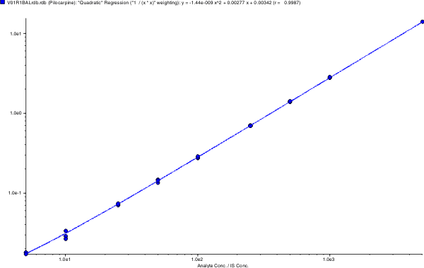 Area Ratio Versus Analyte Concentration, Quadratic Calibration Curve Weighed 1/X2