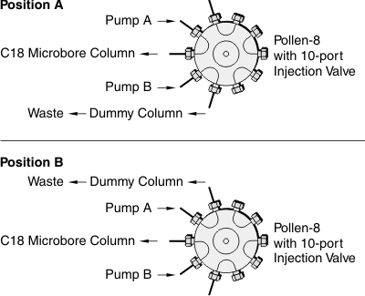 The biological fluids to be analyzed are rat plasma and rat brain microdialysate samples. Since they are very likely to have low concentration of target compounds and limited sample volume, using microbore column for LC becomes a sensible choice. Lower flow rate and thinner gasket , which is used in the microbore column LC/EC system also improves sensitivity by increasing oxidation efficiency. However, the four isoflavones have very different polarities, and they cannot be separated in a single run with reasonable analysis window. Therefore, a pump switching system was adopted.