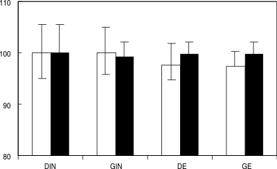standard solutions. Open bars: at 0 min. Filled bars: at 480 min.