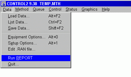 Now switch back to Control. Start the sequence of runs or the Queue. After the data for each run are saved, Report will become active and produce a report for the run.