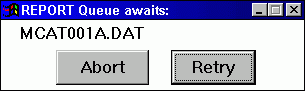If more than one detector is configured, you need a line for each one. Also check the CYCLE DETECTORS box, which tells Report to process all the detectors for any run before going on to the next run. Then click the PROCESS QUEUE button. Since the data files to be processed do not yet exist, the message "REPORT Queue Awaits:" will appear: