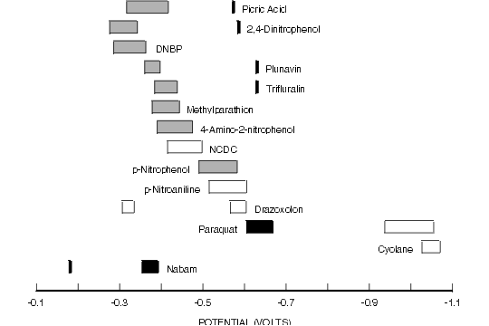 Figure 8.9. Reductive Cyclic Voltammetric Data for Selected Compounds of Environmental Interest.